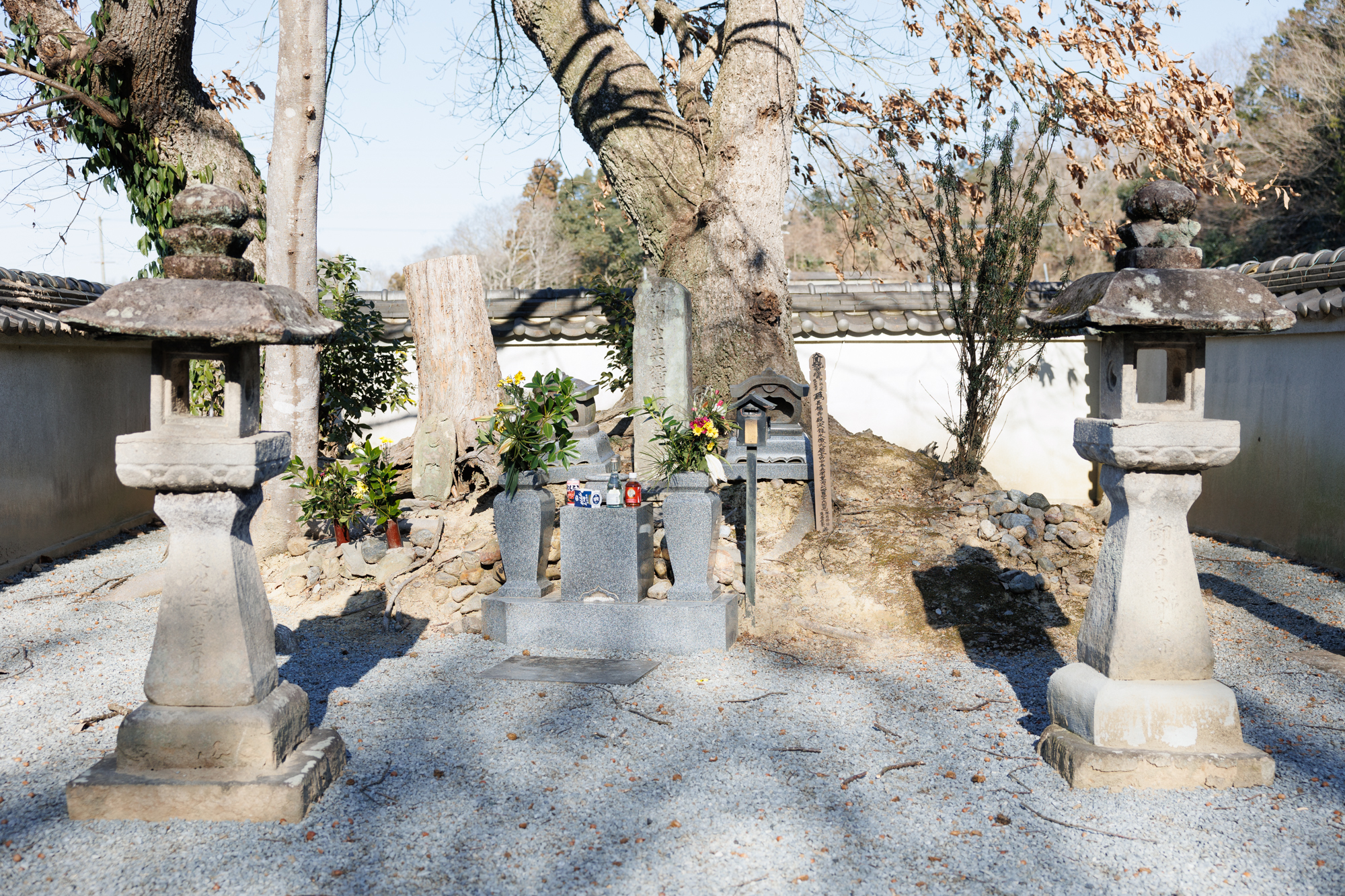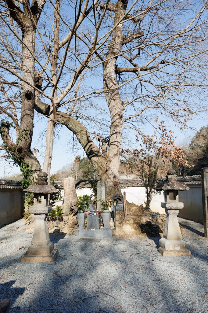 本営のあった山に続いたぶどう畑のまん中の、白い練りべいに囲まれて墓があります。