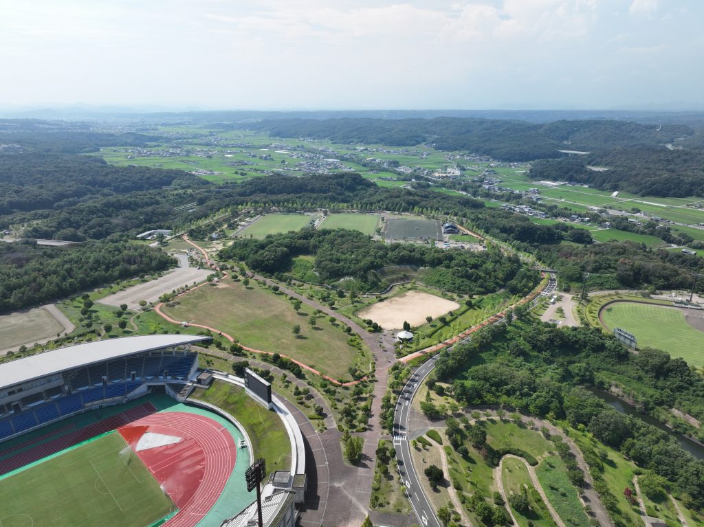 平成17年に兵庫県全体の広域防災拠点の役割を担う公園として整備された、約202haの広さを誇る県立三木総合防災公園。平時は、スポーツ振興拠点として、テニス場、陸上競技場、野球場など高品質なスポーツ施設や緑豊かな自然があり、年間約100万人の方が来園しています。災害時は、活動要員の集結・出動拠点、救援物資の仕分け・集積などの拠点として役割を担います。