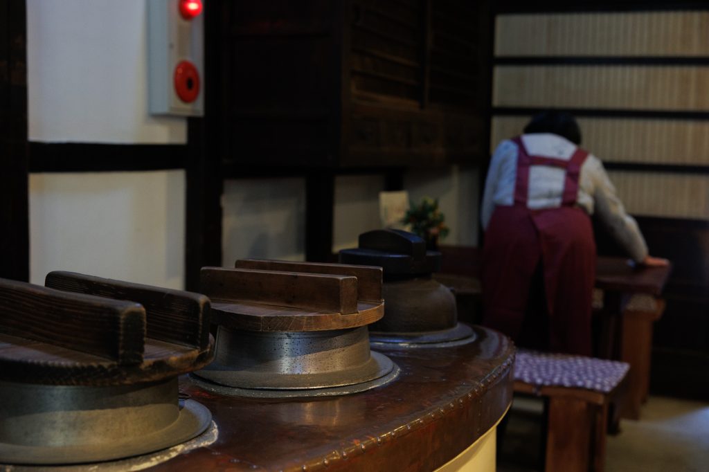 建物は江戸時代に建てられた第一期の建物と明治以降に増築された第二期の建物に分かれています。第一期の建物は、文政九年(1826年)に建てられた母屋二棟(道路側)、土蔵一棟(中庭右側)です。第二期の建物は、明治初期に玉置家の居宅になって、初代大器氏と三代目福蔵氏により、離れ座敷、渡り廊下が増築され、当時の匠技が施されています。